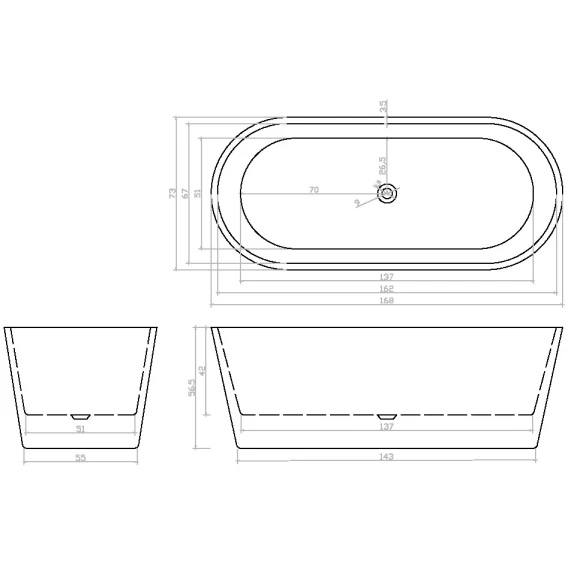 Акриловая ванна Ceruttispa Resia CT7388 168x73 см, отдельностоящая, белый
