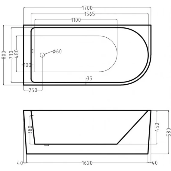 Акриловая ванна Esbano Afina ESVAAFINR 170x80 см L, угловая, белый