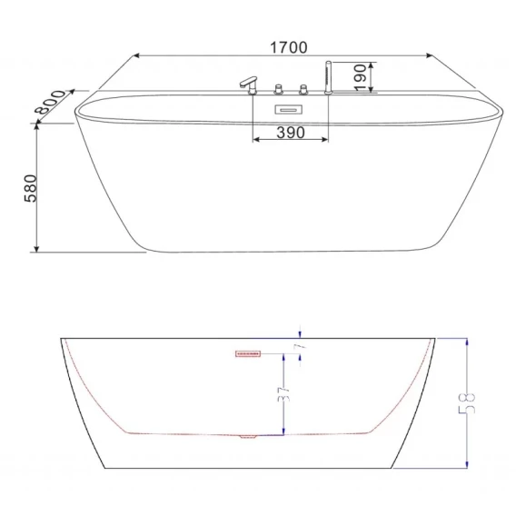 Акриловая ванна Esbano San Marino-SM ESVASANMSM 170x80 см, отдельностоящая, белый