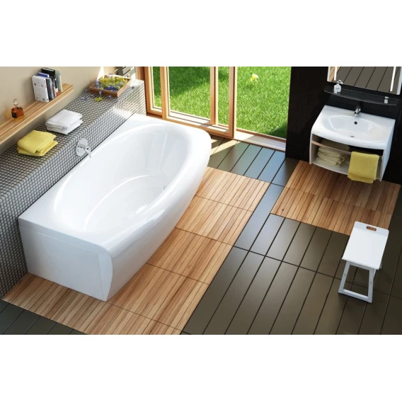 Ванну нельзя дополнить шторой для ванны. В качестве дополнительных аксессуаров можно докупить: переднюю/боковую панели, сточный комплект для ванны и подголовник.