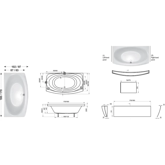 • аксессуары: передняя и боковая панели, сточный комплект для ванны, подголовник