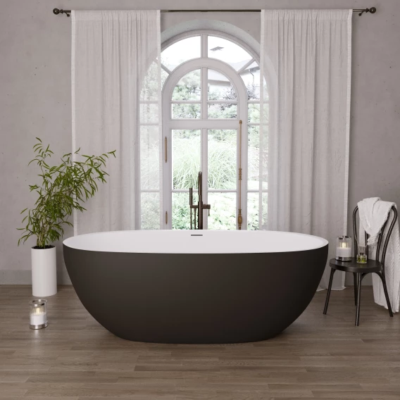Акриловая ванна Grossman Classic GR-2403MB 150x80 см, отдельностоящая, черный матовый/белый