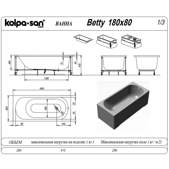 Акриловая ванна Kolpa-San Betty 565800 180x80 см, белый