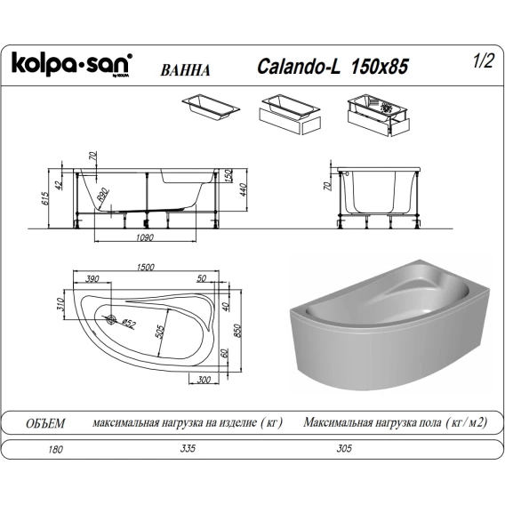 Акриловая ванна Kolpa-San Calando 5190609 150x85 см L, угловая, белый