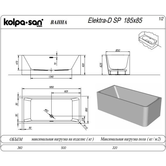Акриловая ванна Kolpa-San Elektra SP 513480 185x85 см D, белый