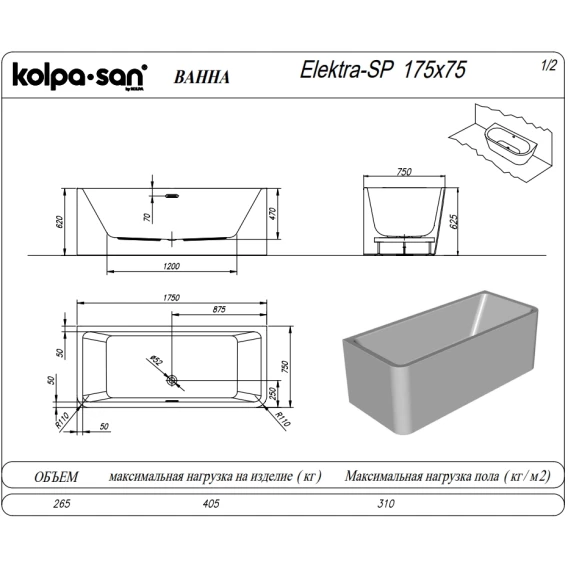 Акриловая ванна Kolpa-San Elektra SP 513490 175x75 см, белый