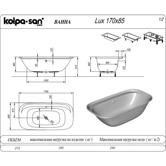 Акриловая ванна Kolpa-San Lux 922830 170x85 см, врезная, белый
