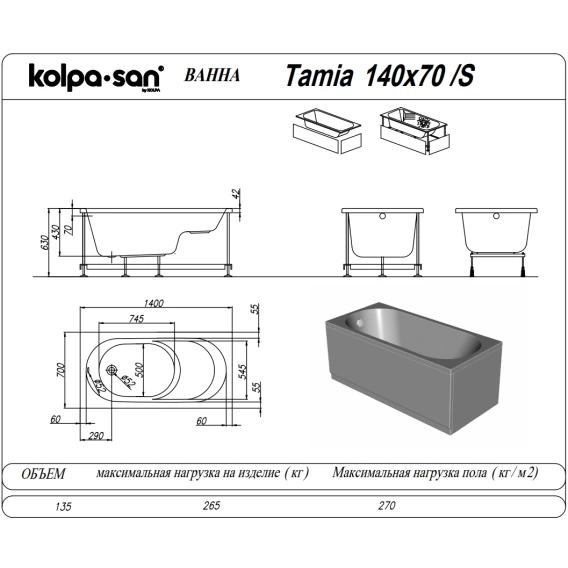 Акриловая ванна Kolpa-San Tamia S 562990 140x70 см, белый