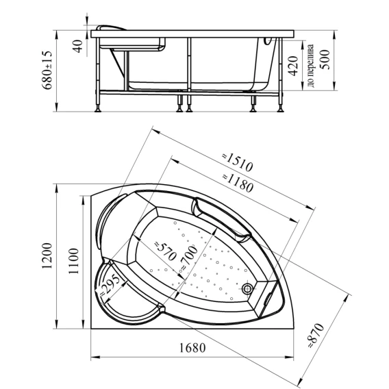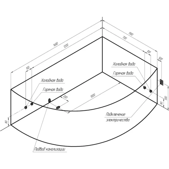 Акриловая ванна левая 168x120 см Radomir Алари 2-01-0-1-1-218