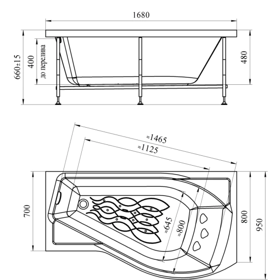 Акриловая ванна левая 168x95 см Radomir Миранда 2-01-0-1-1-209