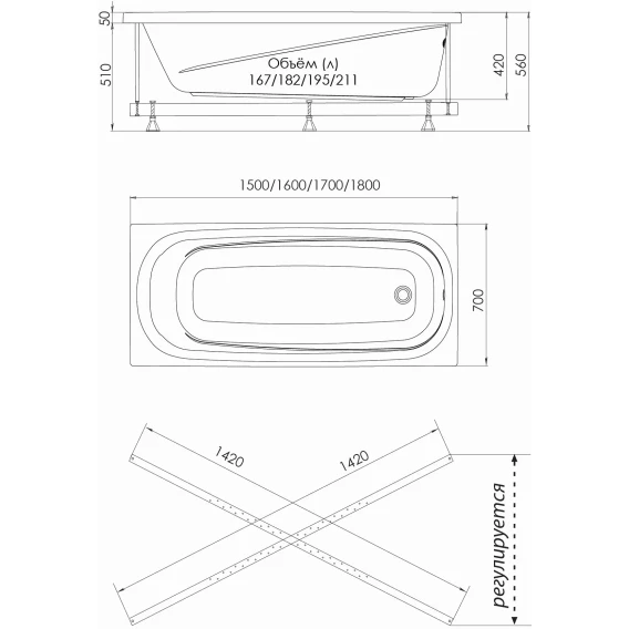 Акриловая ванна Niagara Atrio NG-A18070 180x70 см, белый