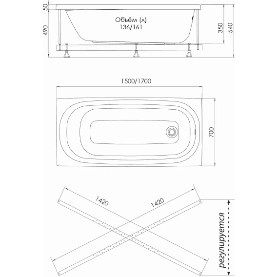 Акриловая ванна Niagara Brava NG-B17070 170x70 см, белый