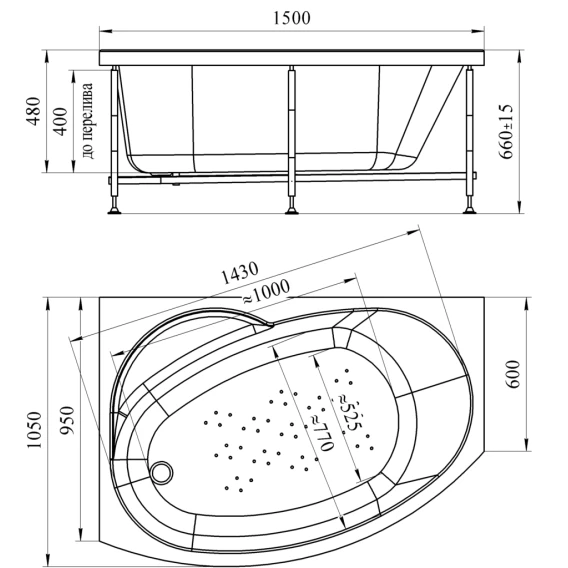 Акриловая ванна правая 150x105 см Radomir Монти 2-01-0-2-1-213