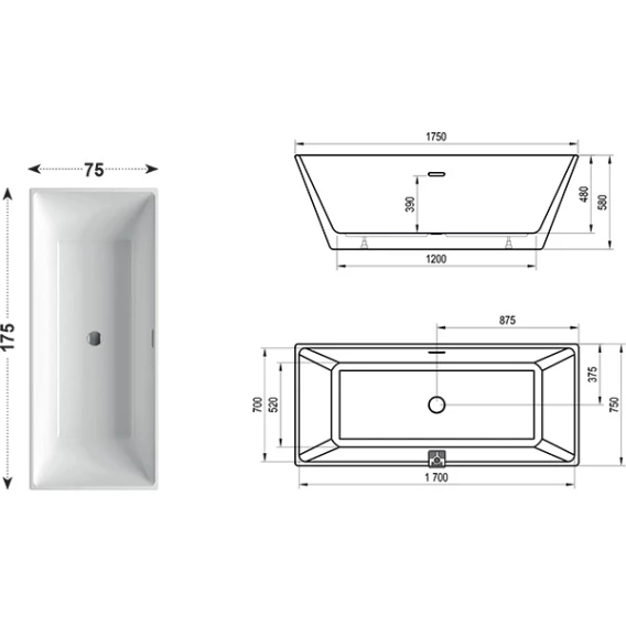 Ванну нельзя дополнить шторой для ванны. Все коммуникации должны прокладываться ниже уровня пола (сток, выводы холодной/горячей воды для напольного смесителя). В комплектацию изделия входят ножки, перелив и слив. Сточный комплект для ванны докупается отдельно. Комбинируется с отдельно стоящим напольным смесителем FM 081.00.