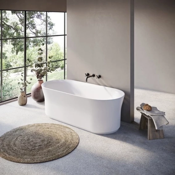 Ванну нельзя дополнять шторкой для ванны. Подвод воды к напольному смесителю и водоотводящий трубопровод должны располагаться в полу ванной комнаты. Сточный комплект (сифон, слив-перелив) и опора (ножки) входят в комплект поставки. Для согласованного дизайна мы предлагаем напольный смеситель FM 080 для отдельно стоящих ванн