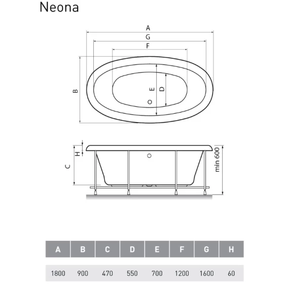 Акриловая ванна Relisan Neona GL000000548 180x90 см, отдельностоящая, белый