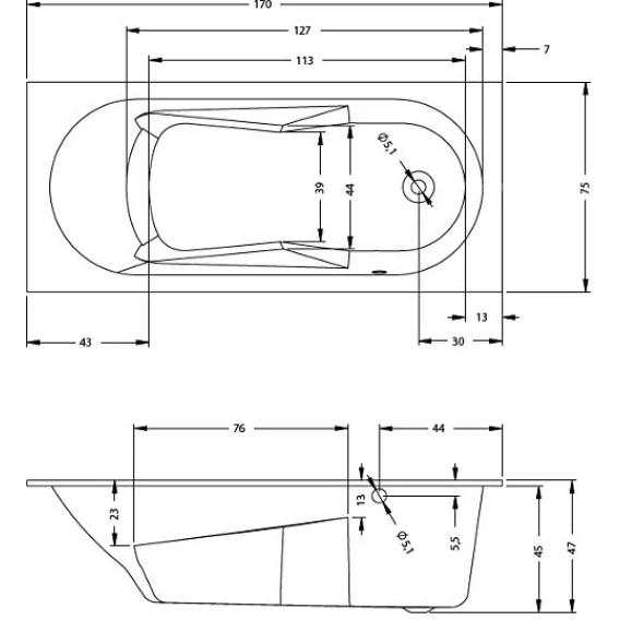 Акриловая ванна Riho Lazy B079001005 170x75 см R, белый