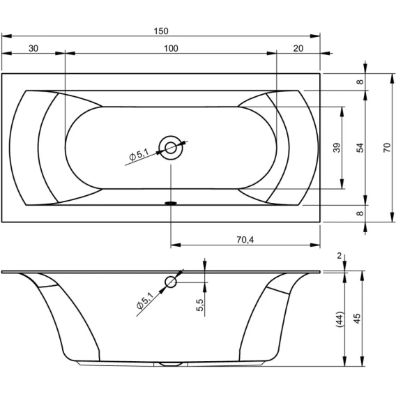 Акриловая ванна Riho Linares B139001005 150x70 см, белый