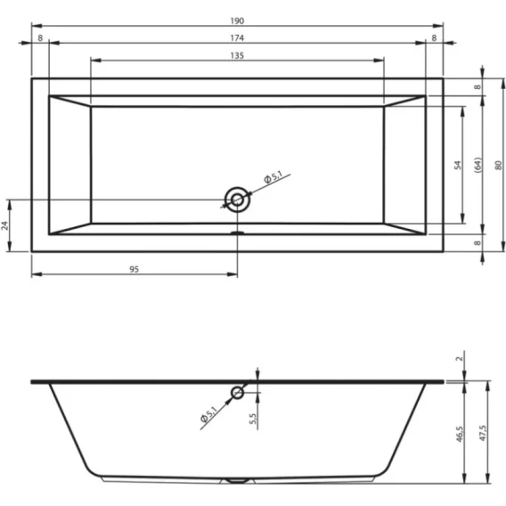 Акриловая ванна Riho Lugo Velvet B136001105 190x80 см, белый матовый