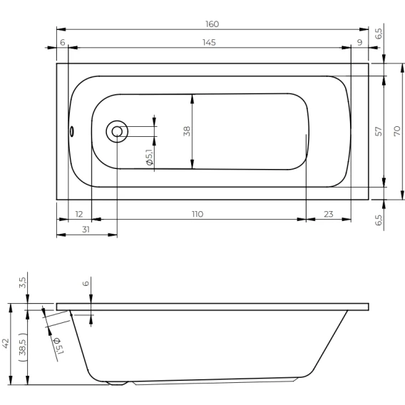 Акриловая ванна Riho Milano B042001005 160x70 см, белый