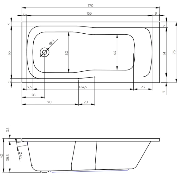 Акриловая ванна Riho Palermo B048001005 170x75 см, белый