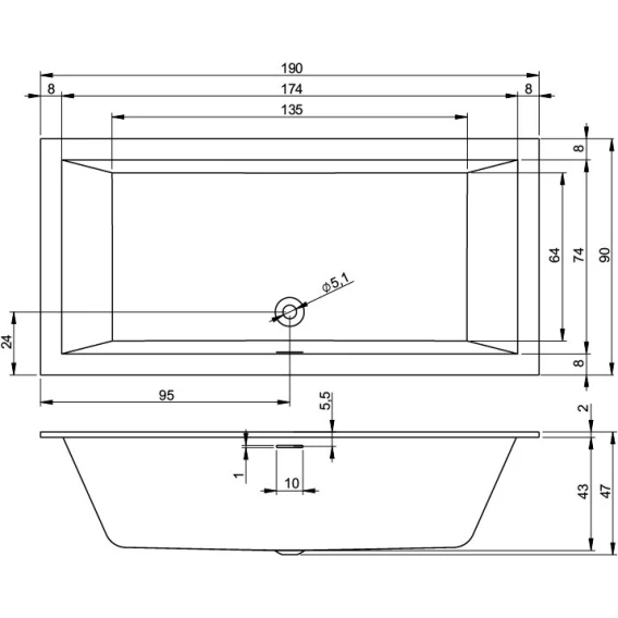 Акриловая ванна Riho Rethink Cubic Fall B109013005 190x90 см, белый