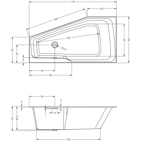 Акриловая ванна Riho Rethink Space B113001005 170x90 см R, угловая, белый
