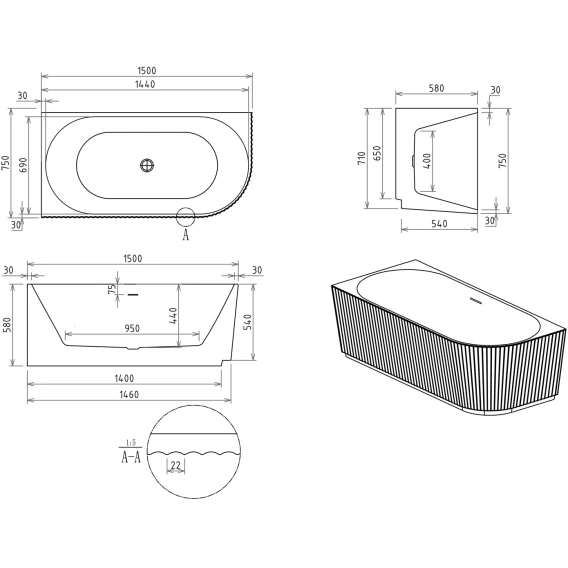 Акриловая ванна Aquatek Оберон OBR160-0000041 160x70 см R, белый