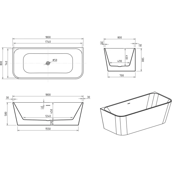 Акриловая ванна Royal Bath Riva RB610400GR 180x80 см, белый