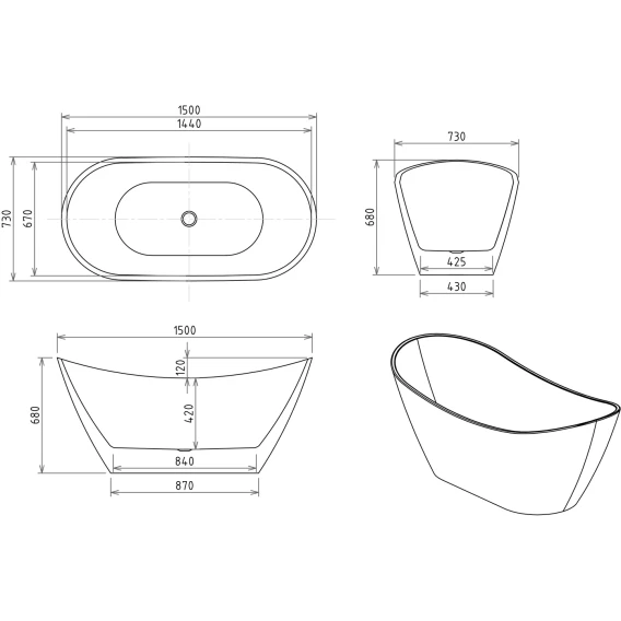 Акриловая ванна Royal Bath Wave RB610100GD 150x73 см, отдельностоящая, белый