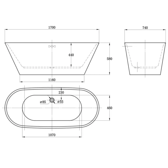Акриловая ванна Vincea VBT-102 170x74 см, отдельностоящая, белый