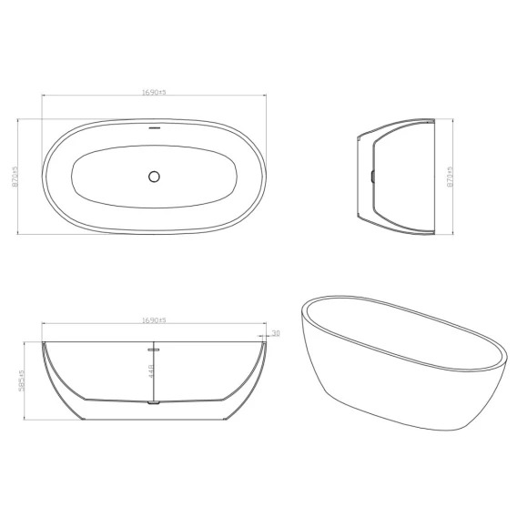 Акриловая ванна Vincea VBT-204 169x87 см, отдельностоящая, белый