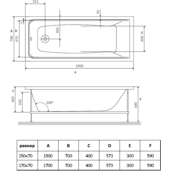 Акриловая ванна Vincea VBT-2G150-FR 150x70 см, белый