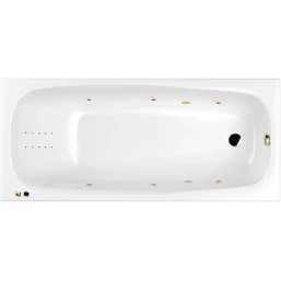 Комплект поставки включает в себя:- Ванна на каркасе, со сливом-переливом;- Гидромассажная система (6 форсунок MIDI-JET);- Массаж спины (10 форсунок NANO);- Пневматическое управление (пневмокнопка вкл/выкл, регулятор подачи воздуха в систему).