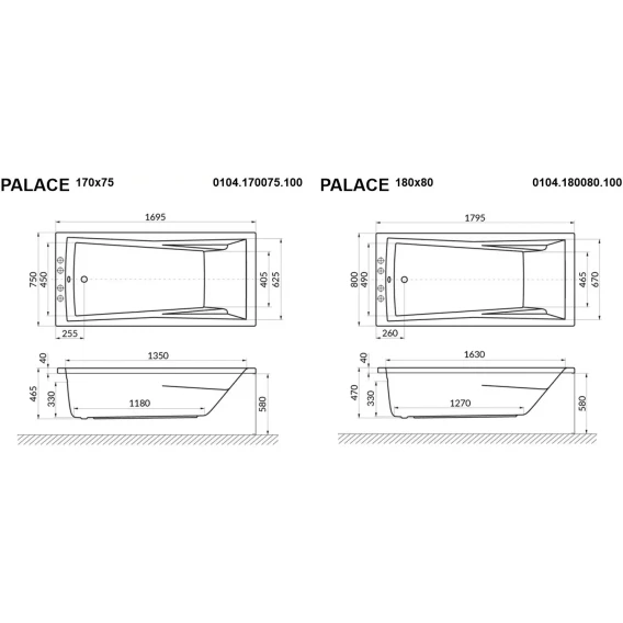 Акриловая ванна Whitecross Palace 0104.170075.100 169,5x75 см, белый