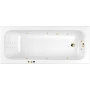 Комплект поставки включает в себя:- Ванна на каркасе, со сливом-переливом;- Гидромассажная система (6 форсунок MIDI-JET);- Массаж спины (10 форсунок NANO);- Массаж ступней (2 форсунки MICRO-JET);- Пневматическое управление (пневмокнопка вкл/выкл, регулятор подачи воздуха в систему);- Кран-баланс (регулировка системы массажа спины);- Защита от сухого пуска.