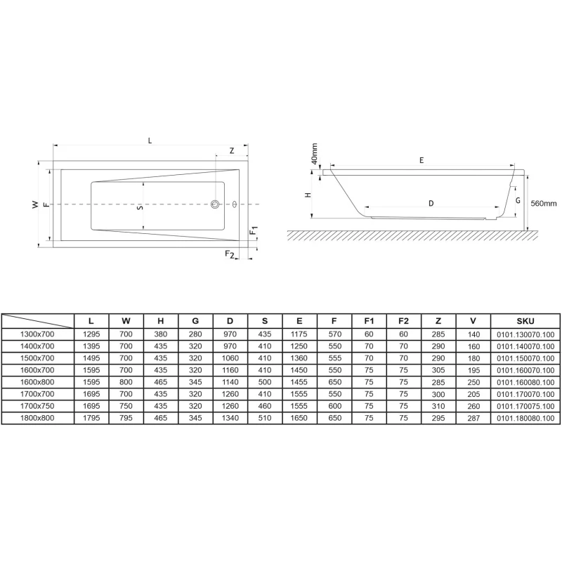 Душевой поддон 170x90 см RGW SMC TUS-179W 553702917-01
