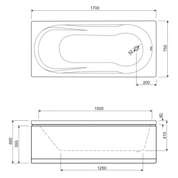 Акриловая ванна 170x75 см Cezares Modena MODENA-170-75-41