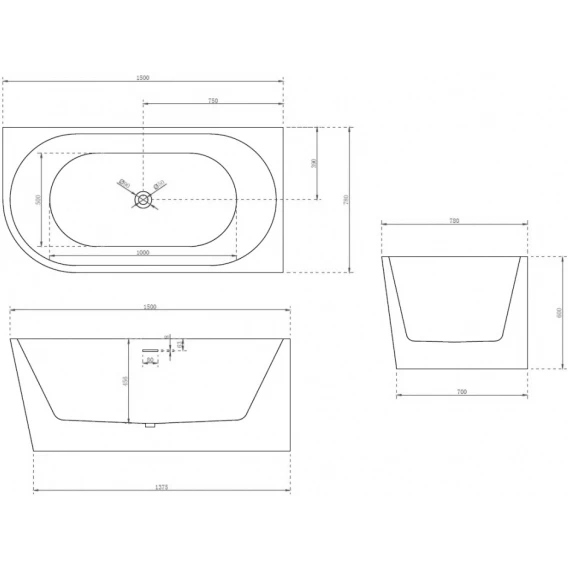 Акриловая ванна 150x78 см R Abber AB9257-1.5 R