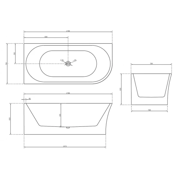 Акриловая ванна 170x78 см Abber AB9257-1.7 L