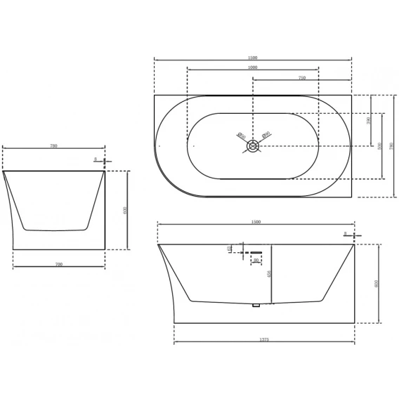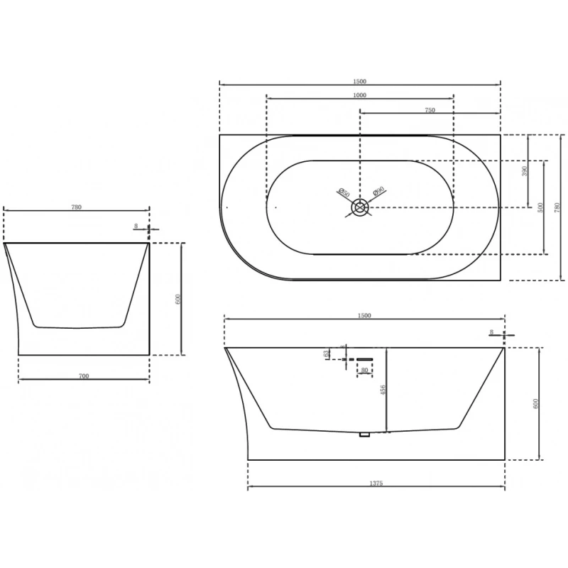Акриловая ванна 150x78 см R Abber AB9258-1.5 R