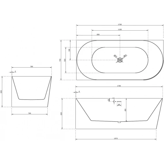 Акриловая ванна 170x78 см L Abber AB9258-1.7 L