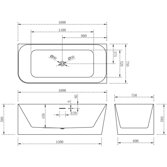 Акриловая ванна 160x75 см R Abber AB9331-1.6 R
