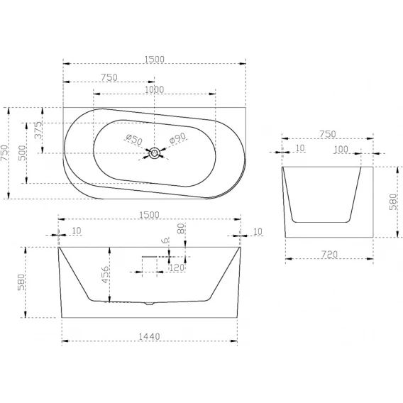 Акриловая ванна 150x75 см Abber AB9494-1.5