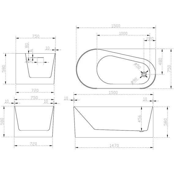 Акриловая ванна 150x75 см R Abber AB9496-1.5 R
