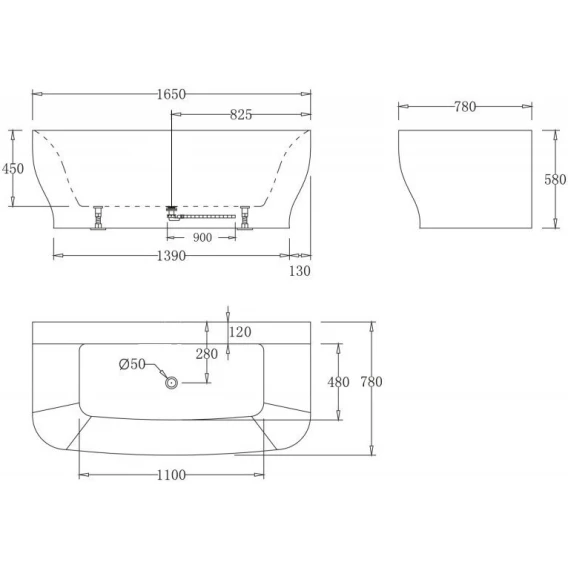 Акриловая ванна 165x78 см BelBagno BB74-NERO-W0