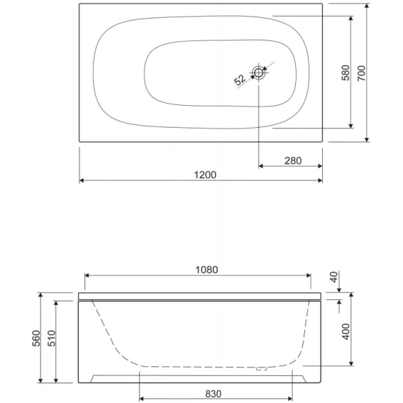 Акриловая ванна 120x70 см Cezares Eco ECO-120-70-40-W37