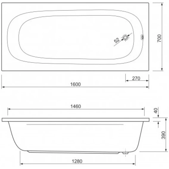 Акриловая ванна 160x70 см Cezares Piave PIAVE-160-70-42-W37