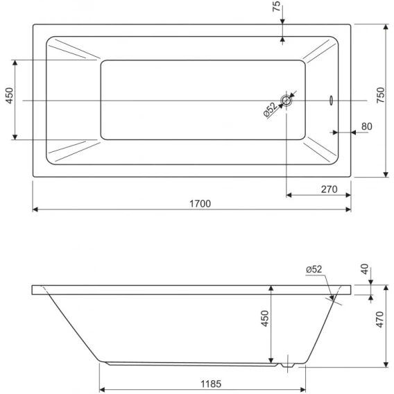Акриловая ванна 170x75 см Cezares Plane solo PLANE SOLO-170-75-45-W37