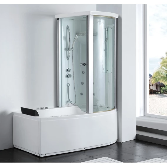 Душевой шланг, Душевая лейка, Держатель для душевой лейки, Подключение для душевого шланга, Полочка, Верхний душ, Металлический каркас, Подголовник, Ручка, Излив, Смеситель, Слив-перелив, Штанга душевая, Ножки, Зеркало, Шторка для ванны